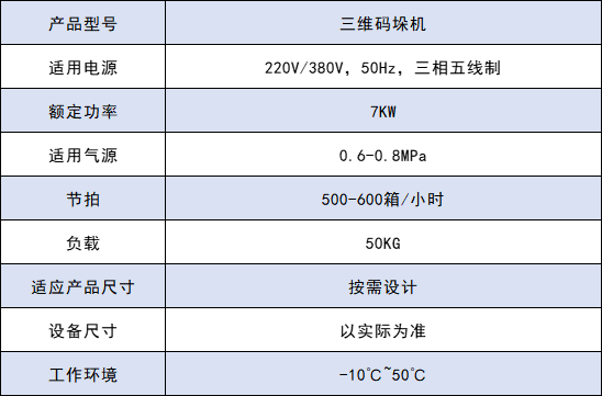 三维码垛机是码垛机最常见,应用最广泛的一种码垛设计。在空间有限,预算不足的情况下,多数采用三维码垛机。常见应用于纸箱、编织袋的码垛,垛型由PLC程序控制,触摸屏操作,简单易学,换型方便。三维码垛机有夹具、安全门,三轴定位,码垛定位滚筒等组成,价格经济实惠,是中小型工厂采购的最优选择。